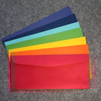 If you're like me, then you love everything rainbow. This 7 pack of #10 Rainbow envelopes are perfect for your handmade cards and notes. gummed flap can be sealed with a wet sponge, a line of adhesive, or washi tape.